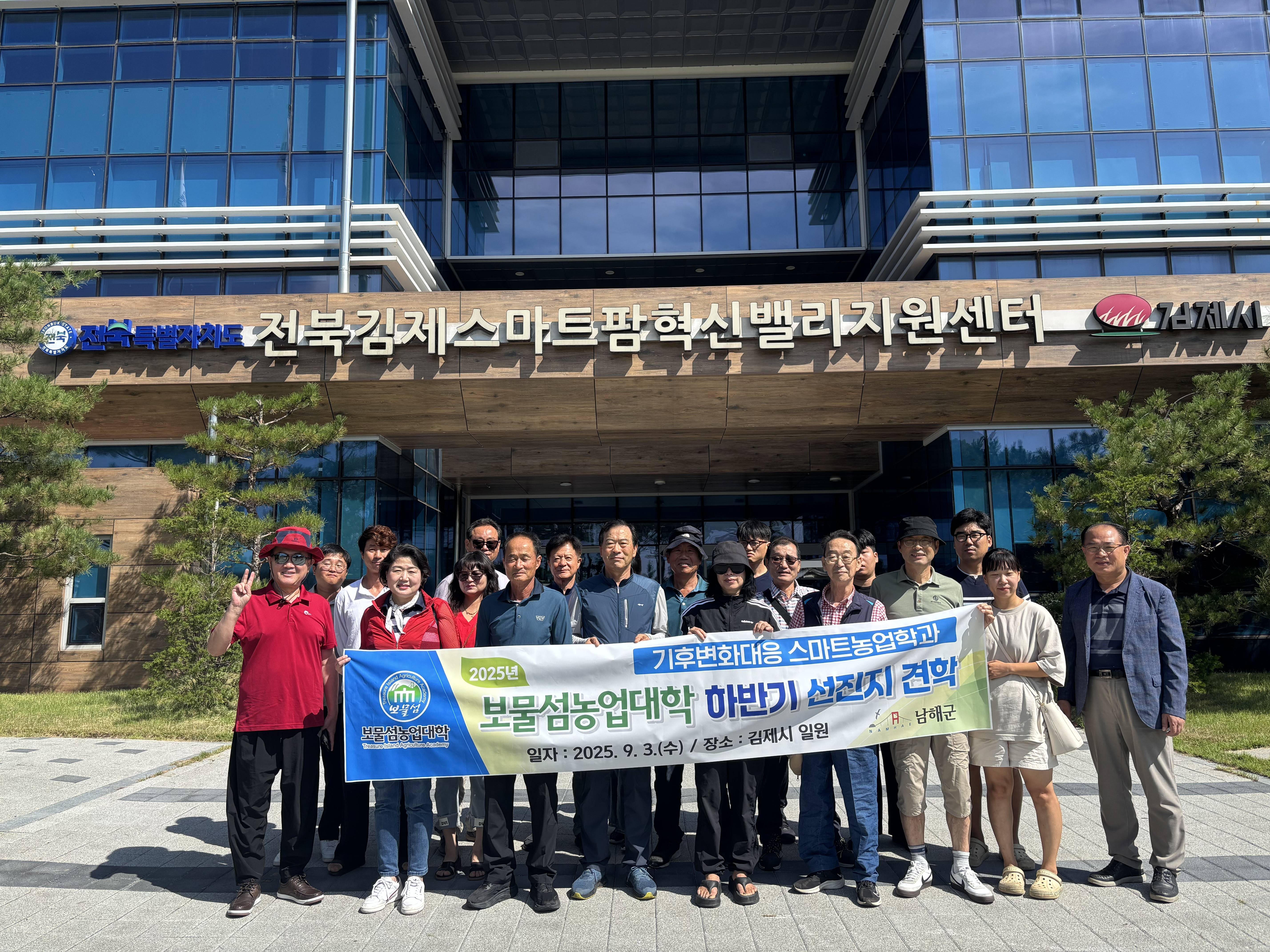 보물섬농업대학(제15기 기후변화 대응 스마트농업학과)은 지난 3일 미래 남해농업을 이끌어갈 전문 인재 양성과 첨단 농업기술 습득을 위해 2025년 하반기 현장견학을 추진했다.