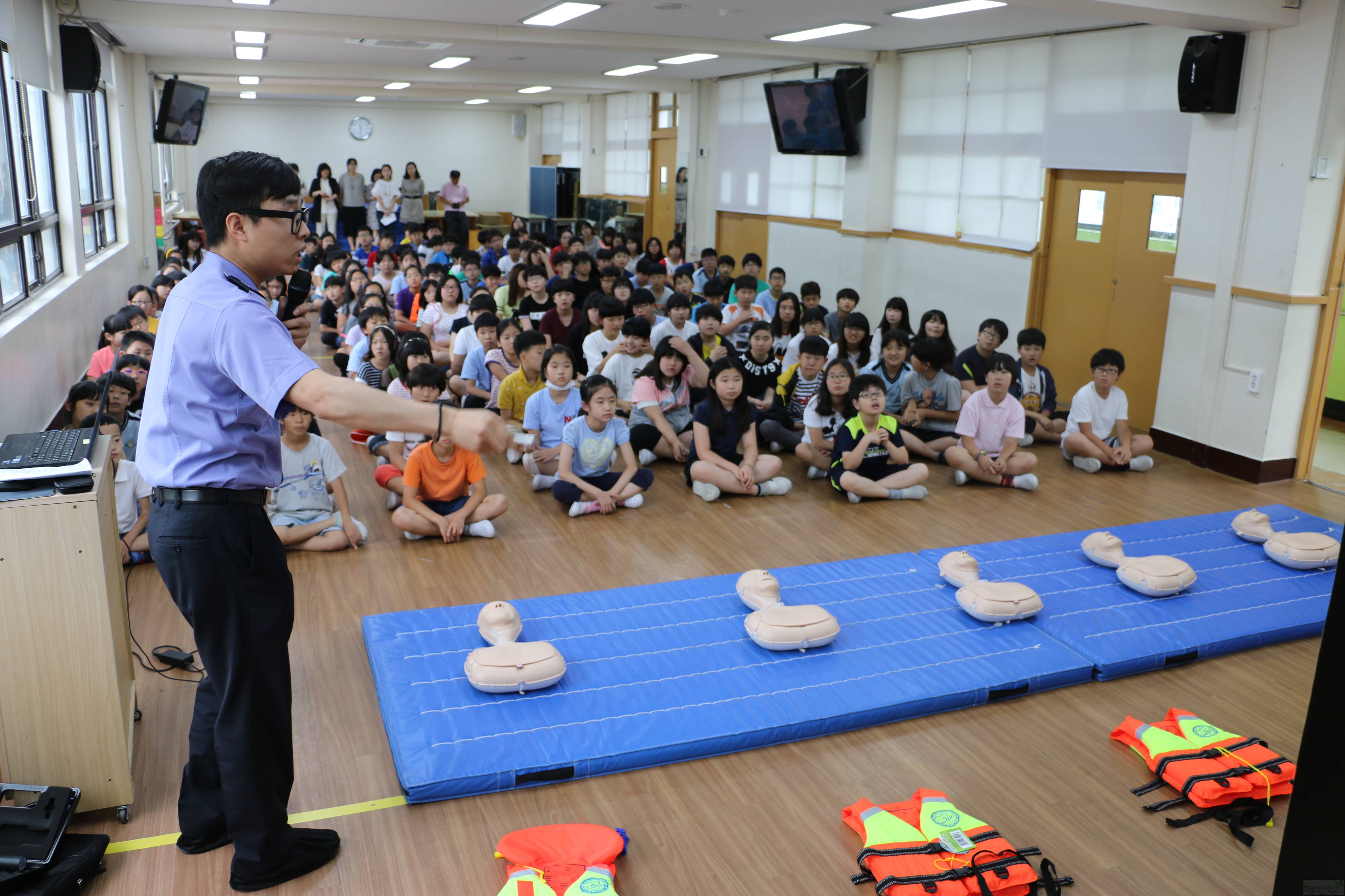 부산해경에 따르면 여름방학을 앞두고 7. 6일 화명초등학교를 시작으로 7. 20일까지 부산시내 107개의 초등학교 교육현장을 40명의 경찰관들이 직접 방문하여 실시한다.