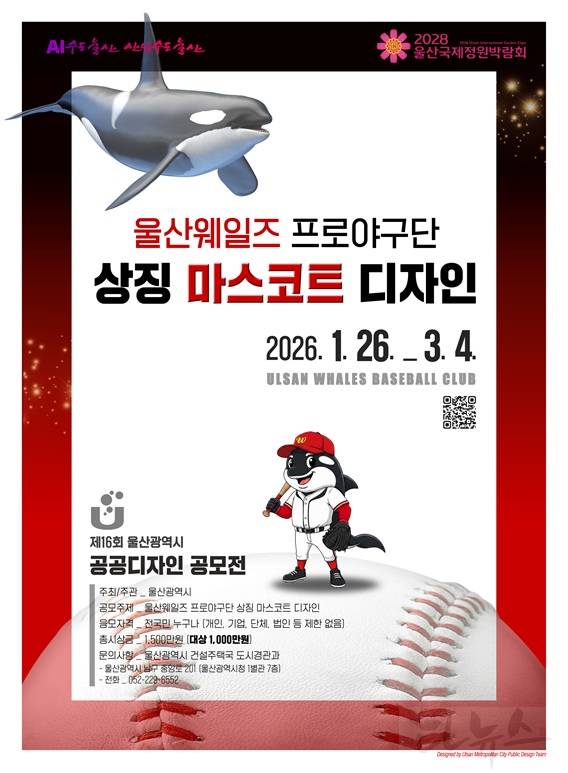 이번 공모전은 전국 최초 시민 프로야구단 ‘울산웨일즈’ 창단을 계기로 울산의 도시 상징성과 프로야구단 이미지를 결합한 대표 마스코트를 개발하고, 구단 홍보는 물론 공공디자인 자산으로 활용하기 위해 마련됐다.